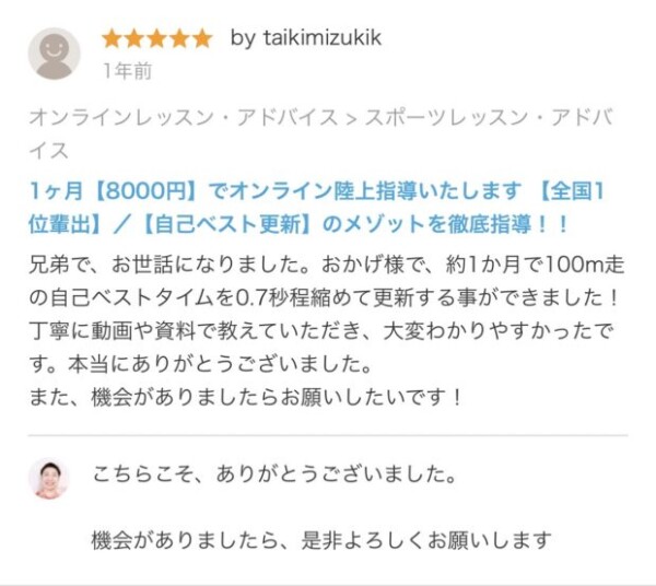 1対-多数 を教える陸上教室では、1人1人に対して教える時間が少なく、指導が行き渡らない問題があると考え、オンライン陸上指導を始めました。